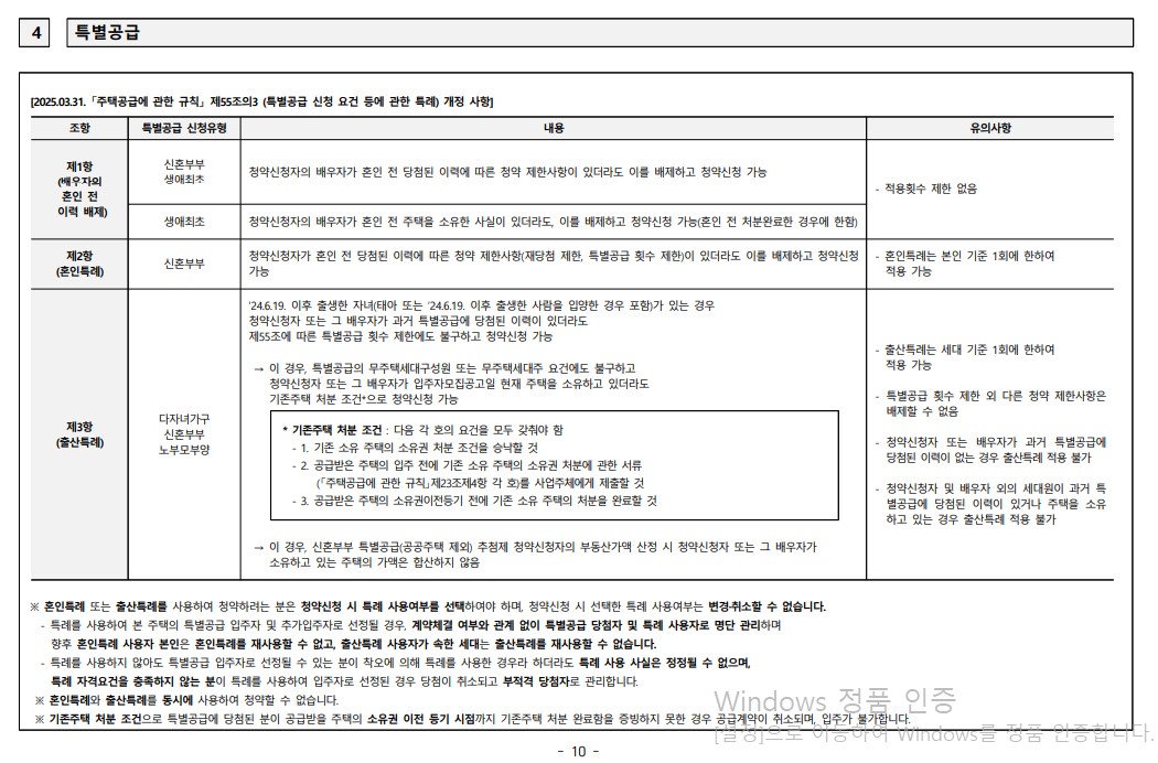 특별공급은 다음과 같은 유형별 조건을 충족한 무주택자에게 청약 기회를 제공.