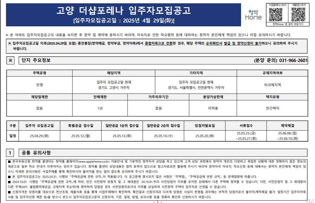 | 거주 요건 | 고양시 또는 수도권(서울·인천 포함)에 1년 이상 거주해야 ‘해당지역 우선공급’ 가능 |