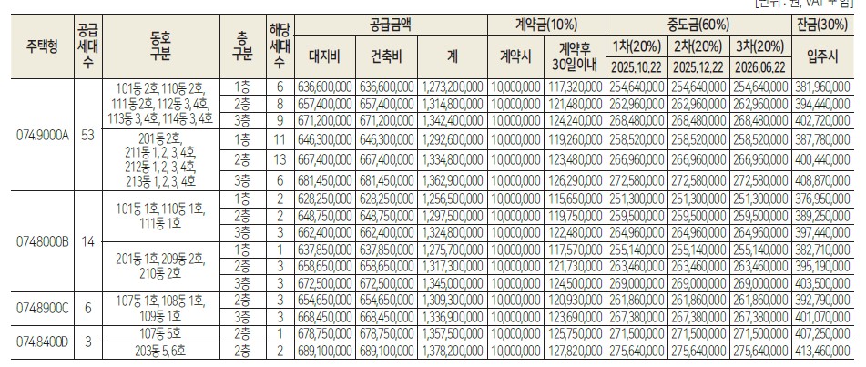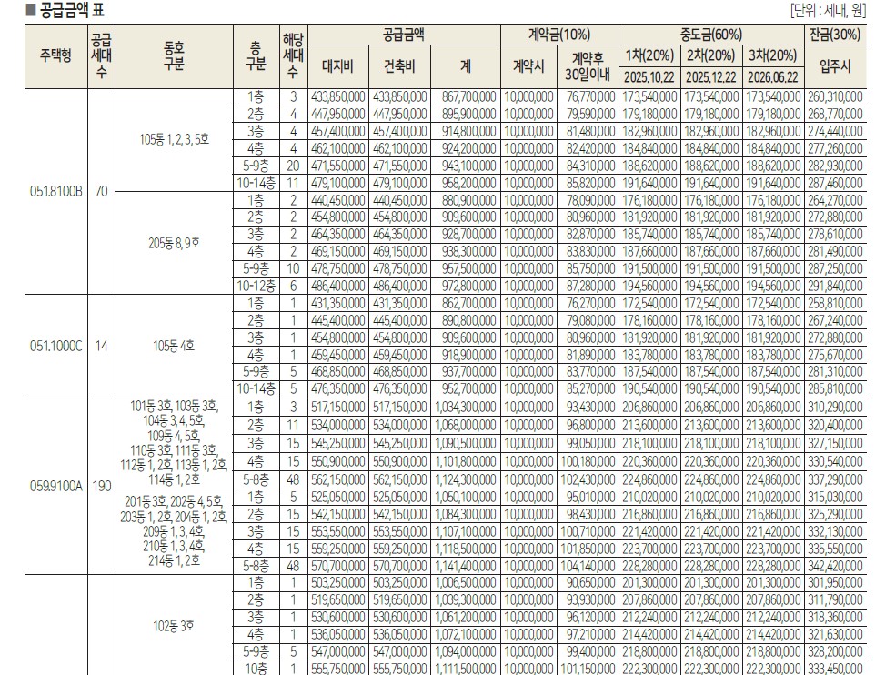 - 중도금 대출: 이자 후불제 적용 예정.