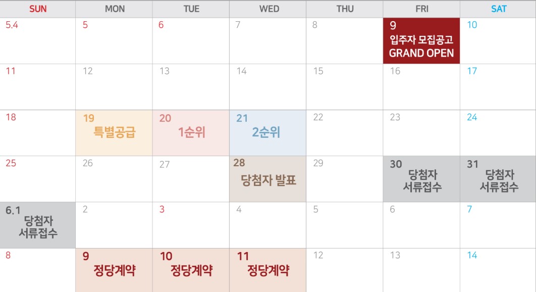 - 특별공급 청약: 5월 19일(월)